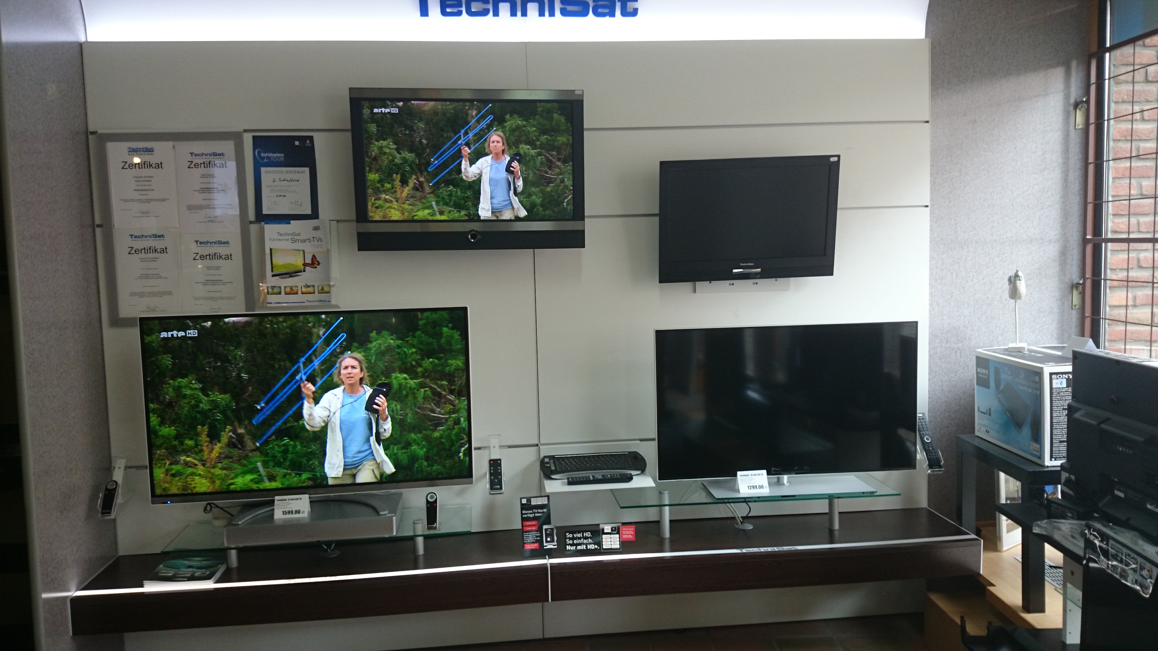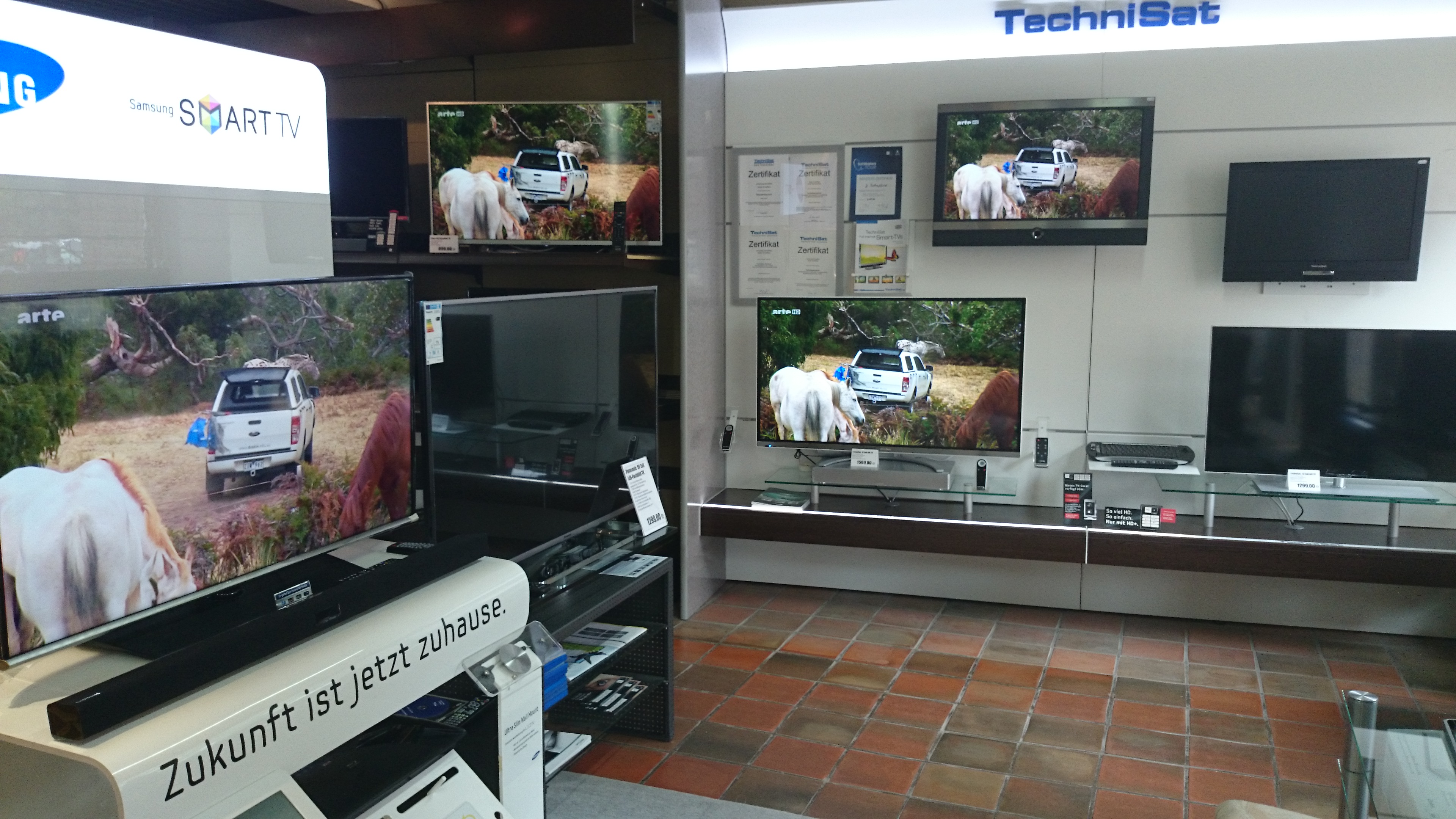 In unserem Fachgeschäft in der Deichstrasse 42 präsentieren wir Ihnen auf 100 qm ausgewählte Geräte der Marken Technisat, Panasonic, Sony, Samsung, Pioneer, Siemens, Bosch und vielen anderen Marken. Hier werden Sie von uns fachkundig beraten, können Geräte anfassen und auch ausprobieren und bekommen neben Original-Zubehör und -Ersatzteilen auch wertvolle Tipps zu Pflege, Bedienung und Energieeffizienz. Über unseren elektronischen Katalog haben wir überdies Zugriff auf mehr als 10.000 Geräte, sodass wir Ihnen Ihr Wunschprodukt innerhalb von 24 Stunden liefern können.